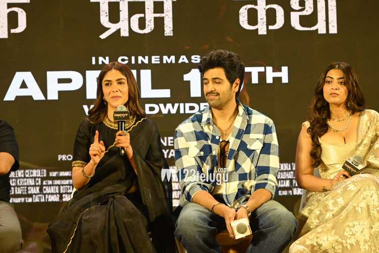 Adivi Sesh and Mrunal Thakur at the Dacoit trailer launch event in Mumbai